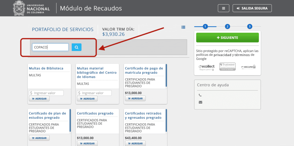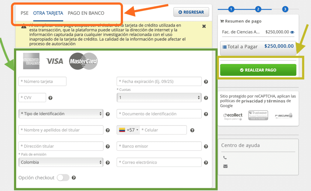 Para realizar el proceso de pago siga las instrucciones: