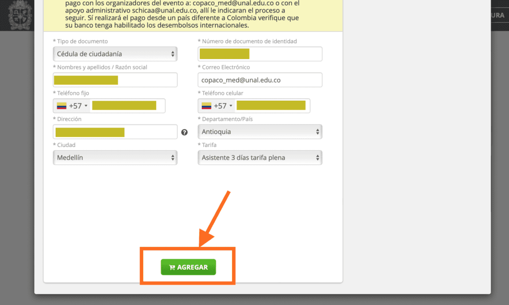 • Guarde su comprobante de pago en caso de que tenga que reportar alguna novedad. Si tiene algún inconveniente con la plataforma comuníquese con copaco_med@unal.edu.co o schicaa@unal.edu.co